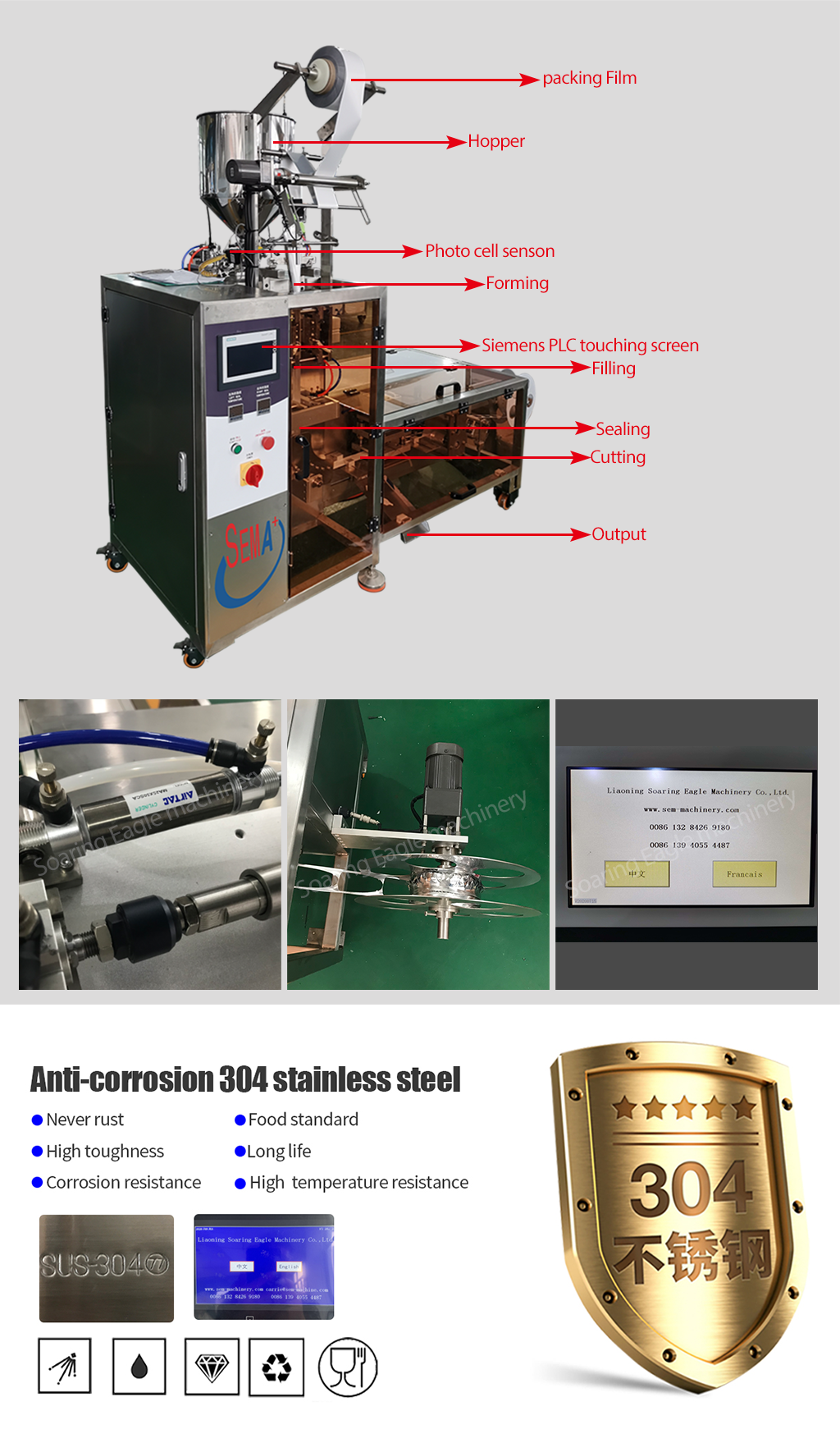 | Function | Automatically measuring volume, making bags, filling, sealing, cutting, cutting easy tearing notch, etc. |