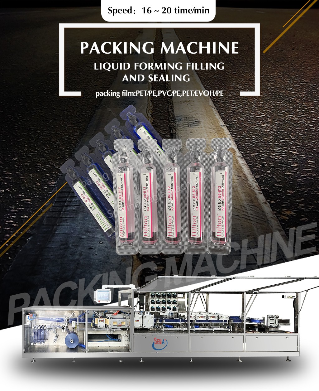 Automatic plastic ampoule forming, liquid filling, sealing, cutting .