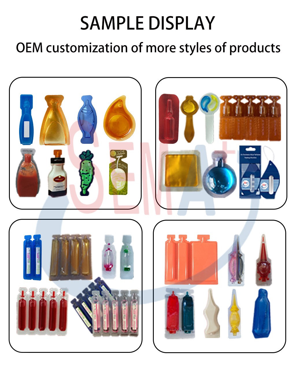 This machine is suitable for packaging cosmetics, food, olive oil, syrup, seasoning sauce, tomato sauce, honey, oral liquid oil, eye cream, fertilizers, etc. Fully automatic plastic ampoule molding, filling, sealing, and cutting. Ampoule filling machines can have easy tear line production and date embossing. Features: PLC control, touch screen English operation. PID temperature control. The filling volume is required to be 0.5-200ml. Power supply: According to the requirements of customers in each country. Each machine has a CE certificate.