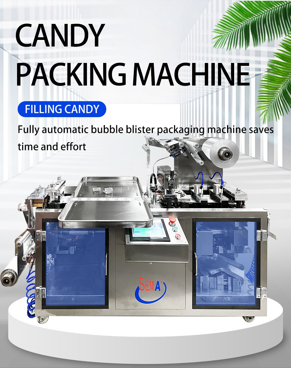 The blister packing machine could have easy tear line making and date embossing. OEM/ODM custom design the shape and size of the blister product.It is PLC control , touching screen English Operation.